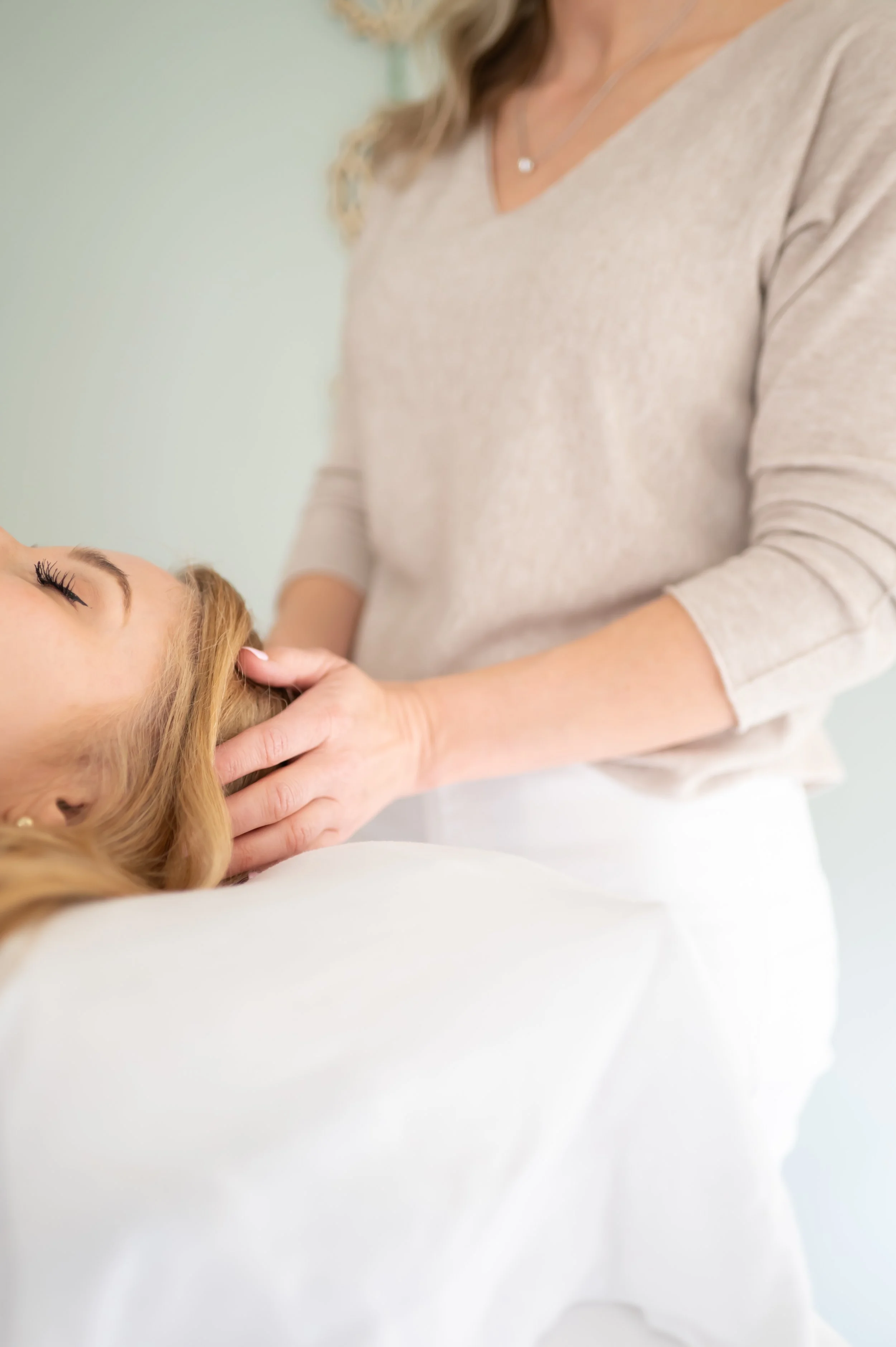 We’ll start with a brief check-in to set an intention, then you’ll rest while I use gentle, hands-on energy work to support your body moving out of fight-or-flight and into a calmer, more regulated state.